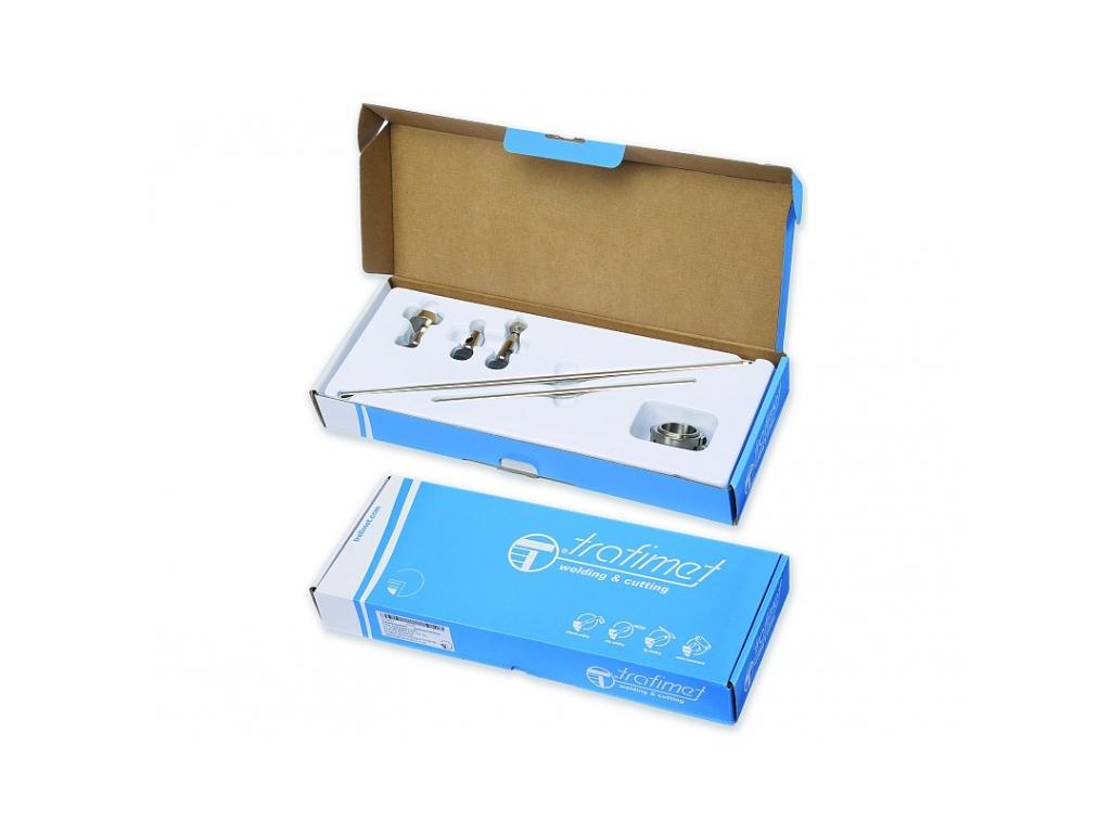 Kružidlo pro plazmový hořák S 75, A 81 se dvěmi vykružovacími tyčkami a třemi uchycovacími nástavci od italské společnosti Trafimet.