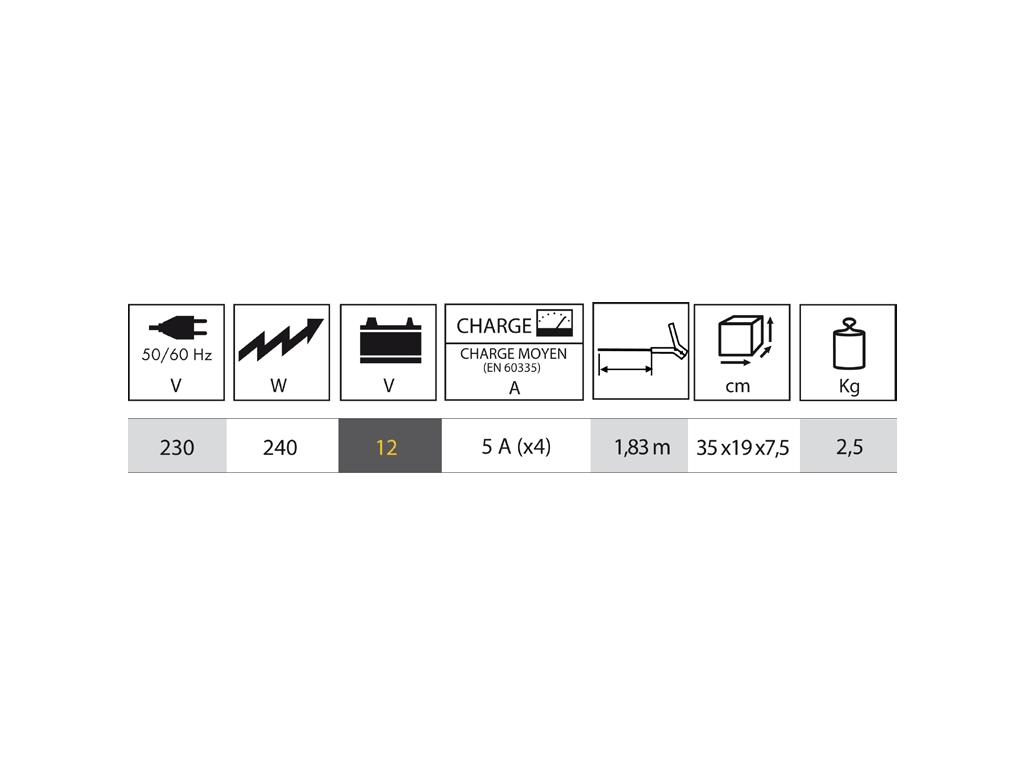 - multifunkční nabíjecí stanice DHC54E se 4 odnímatelnými sadami svorek poskytuje proud až 4× 5A pro nabíjení a udržování plně nabitých až 4 baterií současně