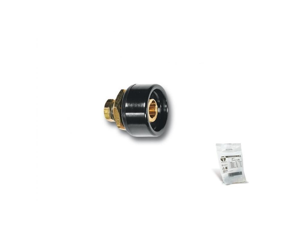 Panelová koncovka TRAFIMET TRAK BE MINI-10/25 - samice pro rychlé připojení držáků elektrod / zemnících svorek ke svařovacímu stroji.