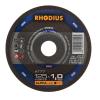Kvalitní rozbrušovací kotouč RHODIUS XT10 s průměrem 125 mm a tloušťkou kotouče 1 mm pro řezání i extrémně tvrdých materiálů - kalené a legované oceli, s velmi tichým chodem.