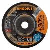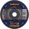 Kvalitní rozbrušovací kotouč RHODIUS XT10 s průměrem 150 mm a tloušťkou kotouče 1,5 mm pro řezání i extrémně tvrdých materiálů - kalené a legované oceli, s velmi tichým chodem.