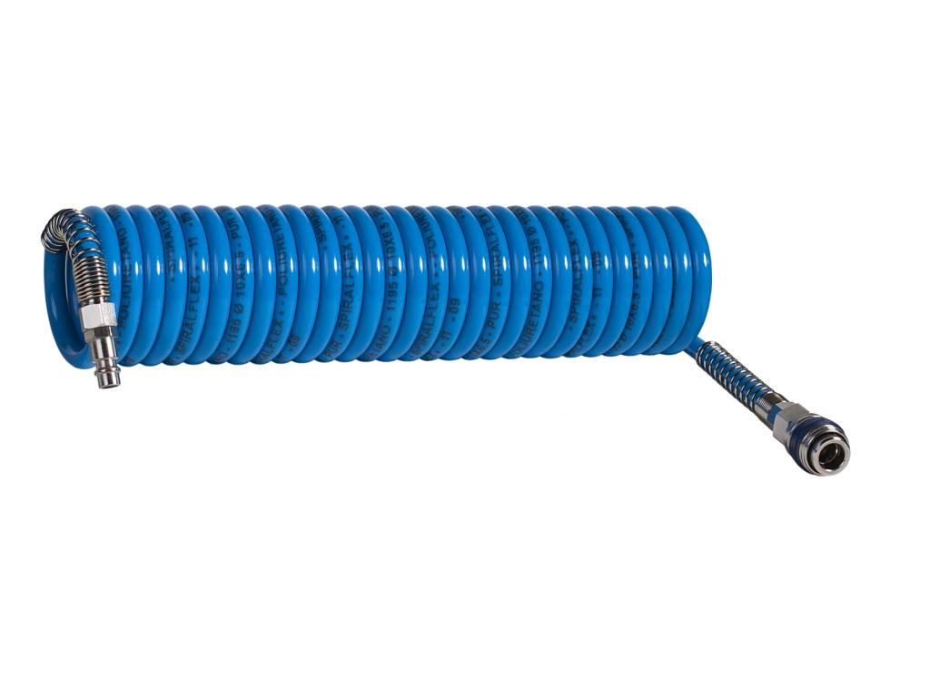 Spirálová hadice PU 10x6,5 /6m z polyuretanu vybavená pružinovou ochranou obou konců hadice proti poškození a zlomení od společnosti Inaircom.